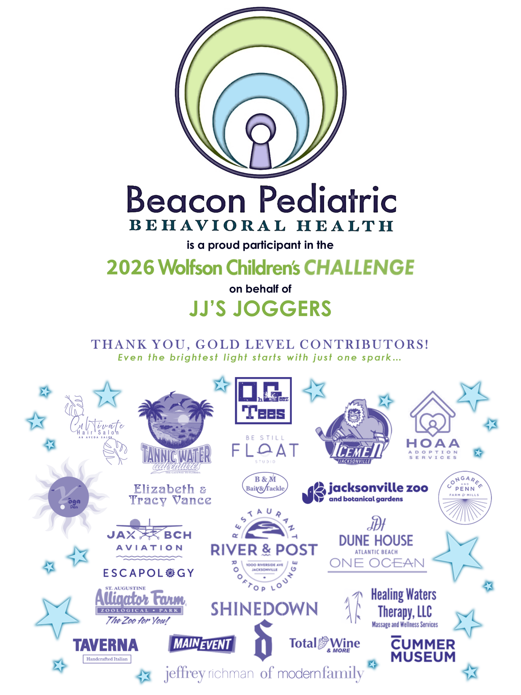 My name is Dr. Adrienne DeSantis King, and I am a child psychologist and behavior analyst, as well as the founder and Executive Director of Beacon Pediatric Behavioral Health. We are excited to participate in the Wolfson Children’s Challenge, a ‘fun run’ benefiting the Baptist Health Foundation, which supports Wolfson Children’s Rehabilitation and Wolfson Children’s Hospital in Jacksonville, Florida. To facilitate our efforts, we have partnered with the nonprofit organization, Heart of Adoptions Alliance, Inc. (HOAA; #CH33346) as our fiscal sponsor for this initiative.